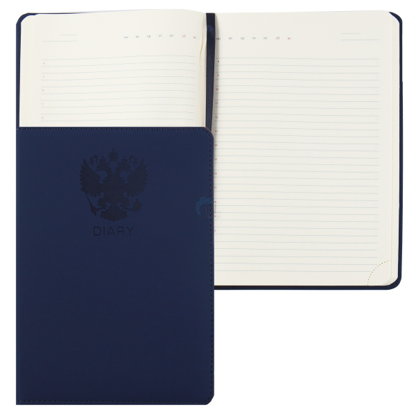 Ежедневник А5 н/д тв обл 7Бц к/з поролон 160л deVENTE Emblem тонир 2ляссе перф тисн отстроч 2234405 синий